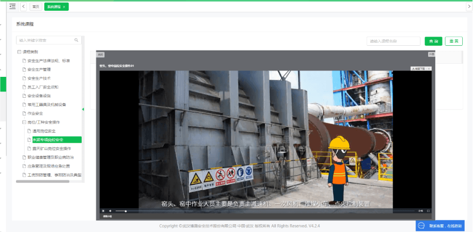 系統(tǒng)內(nèi)置安全教育培訓(xùn)功能模塊和豐富的安全教育培訓(xùn)課件,可在線實(shí)現(xiàn)人員考勤、培訓(xùn)、考試、建檔等功能,實(shí)現(xiàn)水泥企業(yè)安全培訓(xùn)信息化監(jiān)管,便于管理人員掌握安全管理現(xiàn)狀并及時(shí)查缺補(bǔ)漏,提升員工專業(yè)能力和安全文化素質(zhì)水平,從而推進(jìn)企業(yè)整體安全管理水平穩(wěn)步上升。