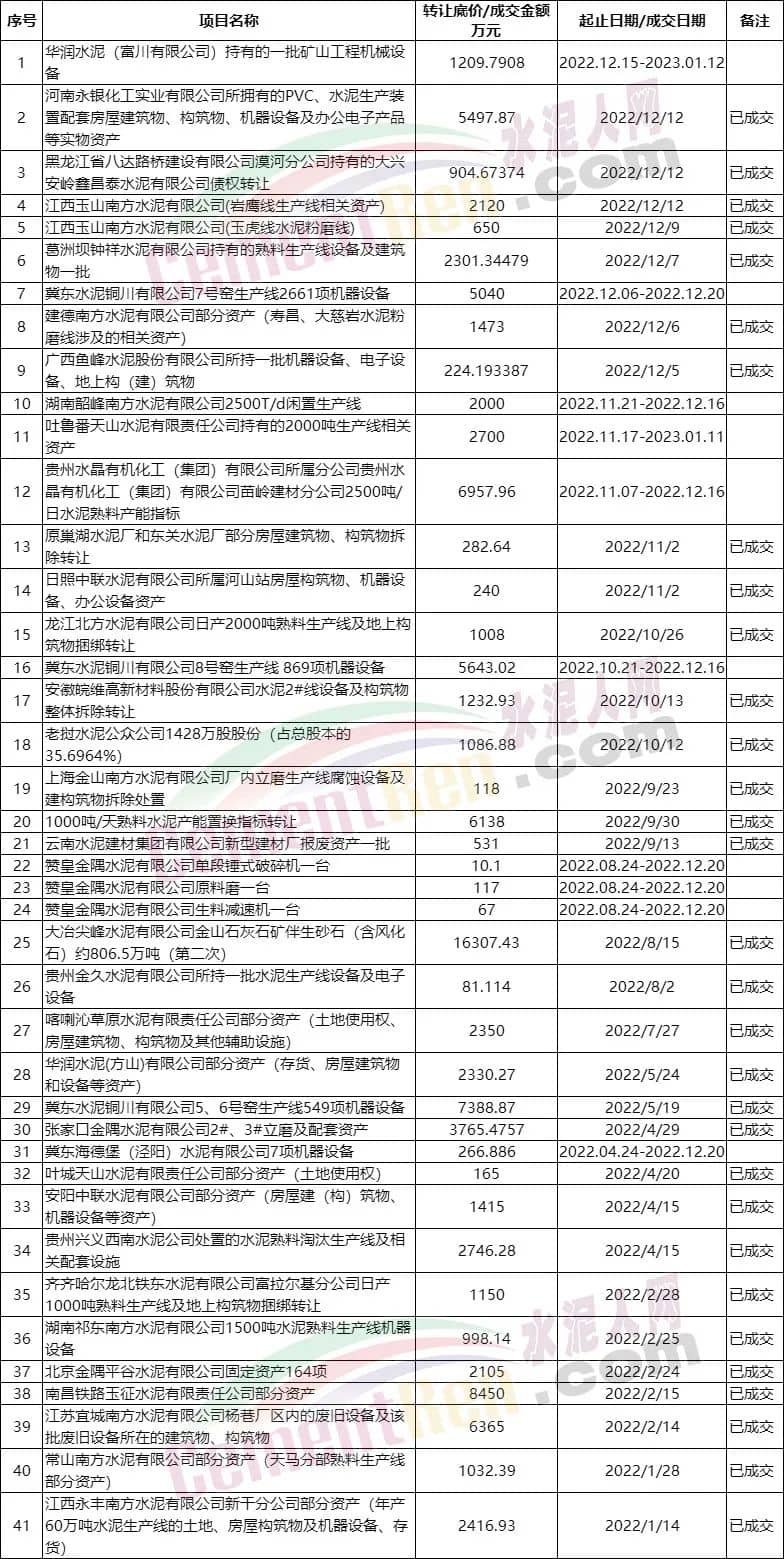 華潤水泥、萬年青水泥、中材水泥等水泥集團(tuán)企業(yè)部分股權(quán)公開交易