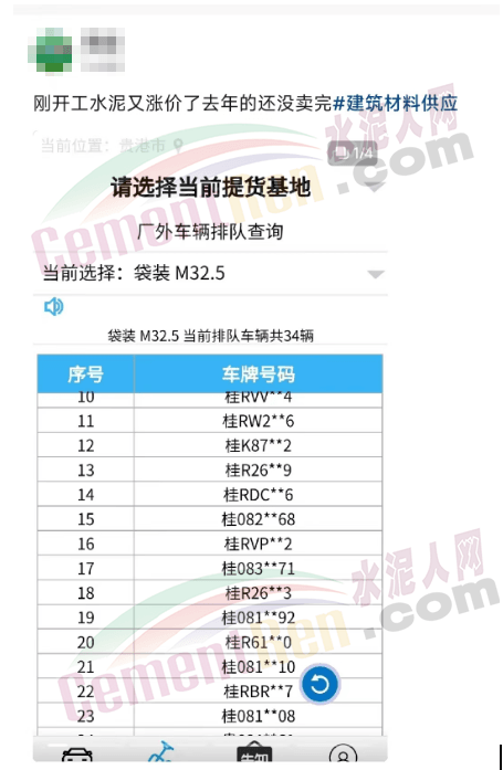 同期,貴港市一家華潤水泥經(jīng)銷商表示:“剛開工水泥又漲價了,去年的還沒賣完!”
