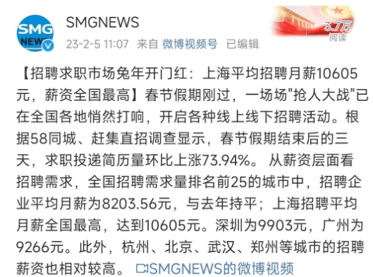 日前,上海廣播電視臺(tái)融媒體中心微博號(hào)發(fā)布消息稱(chēng):春節(jié)假期剛過(guò),一場(chǎng)場(chǎng)“搶人大戰(zhàn)”已在全國(guó)各地悄然打響,開(kāi)啟各種線上線下招聘活動(dòng)。根據(jù)58同城、趕集直招調(diào)查顯示,春節(jié)假期結(jié)束后的三天,求職投遞簡(jiǎn)歷量環(huán)比上漲73.94%。