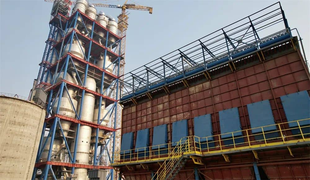十二、泉興水泥公司新建4000t/d水泥熟料生產(chǎn)線預(yù)熱器塔架起吊成功,計劃于2023年9月15日點火
