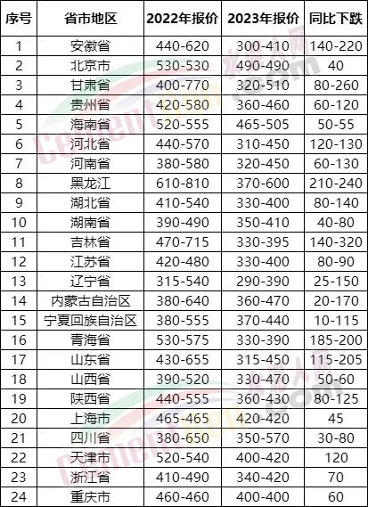 同比上年同期24個省市地區(qū)跌價,最高跌350元/噸