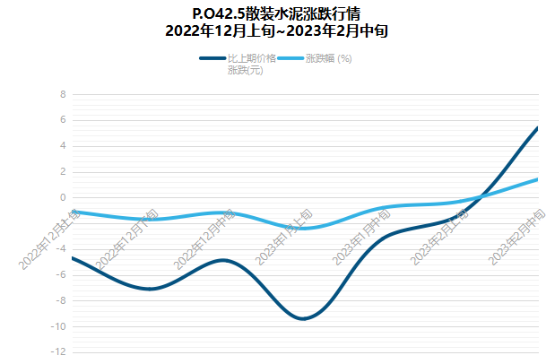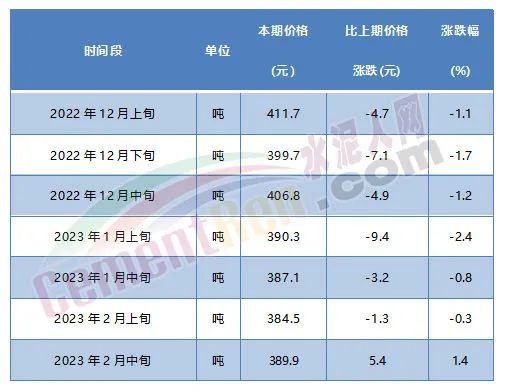 P.O42.5散裝水泥不足400元/噸的報(bào)價(jià),從上年12月下旬至今已經(jīng)持續(xù)了5個(gè)統(tǒng)計(jì)周期。且從2022年12月上旬起一直連續(xù)6個(gè)統(tǒng)計(jì)周期下跌,直至今年2月中旬才見(jiàn)反彈上行。