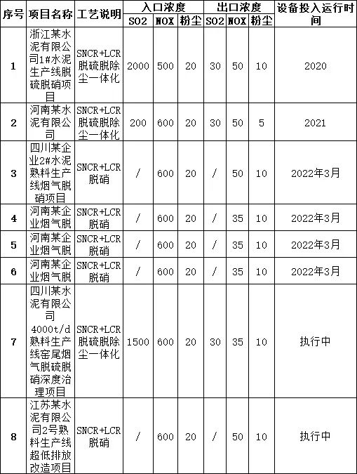 LCR脫硝技術(shù)部分項(xiàng)目業(yè)績(jī)表
