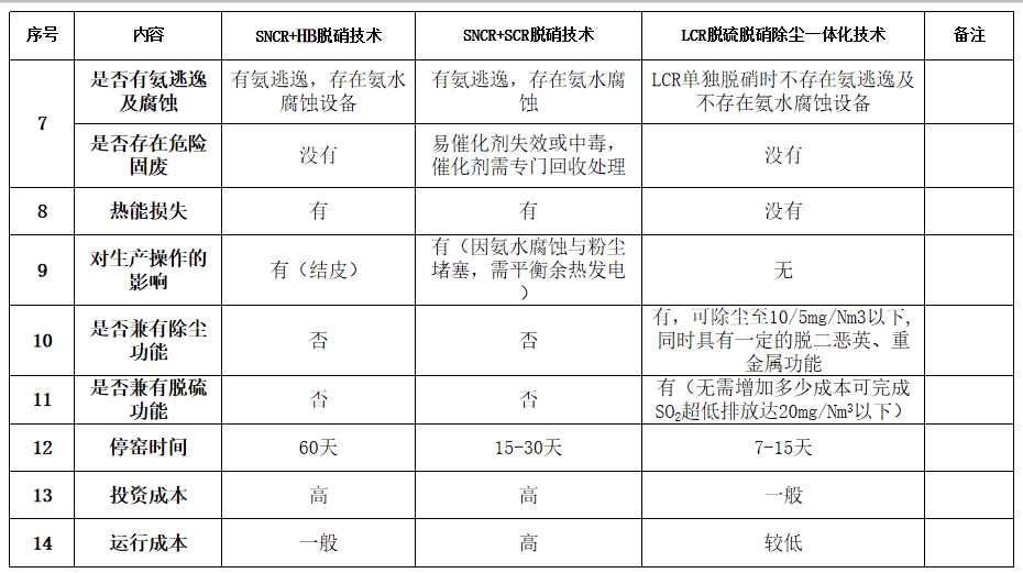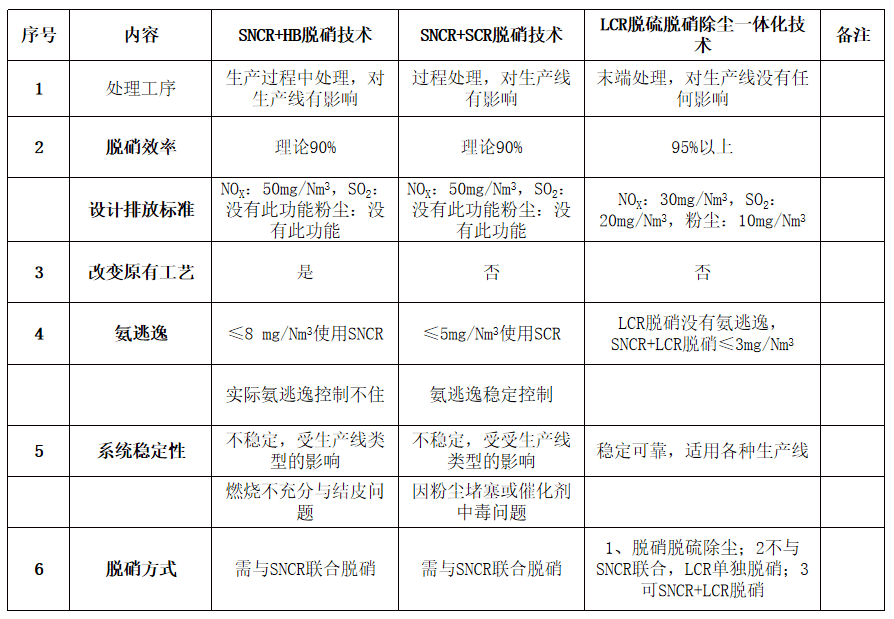 與其他相關(guān)脫硝技術(shù)對(duì)比