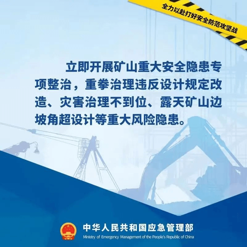 針對礦山安全和工貿(mào)方面,會議強調(diào)要嚴抓嚴管礦山安全,立即開展礦山重大安全隱患專項整治,重拳治理違反設(shè)計規(guī)定改造、災(zāi)害治理不到位、露天礦山邊坡角超設(shè)計等重大風(fēng)險隱患。