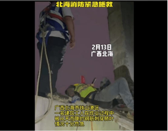 2月13日,鐵山港區(qū)某水泥廠有一名工人被鋼筋貫穿胸部,貫穿工人胸部的鋼筋長約2米,而工人被困在一個水泥筒形倉庫的窗口處,因及時送醫(yī),經(jīng)過救治已脫離生命危險。