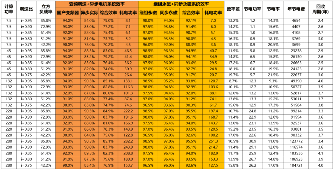 方案1:多功能永磁調(diào)速電機(jī)取代傳統(tǒng)變頻異步調(diào)速電機(jī)系統(tǒng),節(jié)電率高達(dá)8%-25%,投資回收周期3-4年。