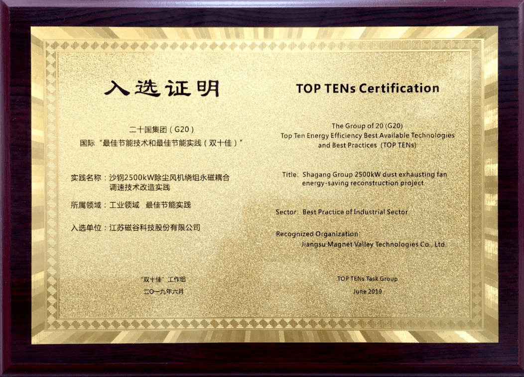 2、入選G20“國(guó)際雙十佳”(節(jié)能領(lǐng)域最高榮譽(yù)),第一屆2014年,第二屆2019年,入選中國(guó)企業(yè)僅三家;