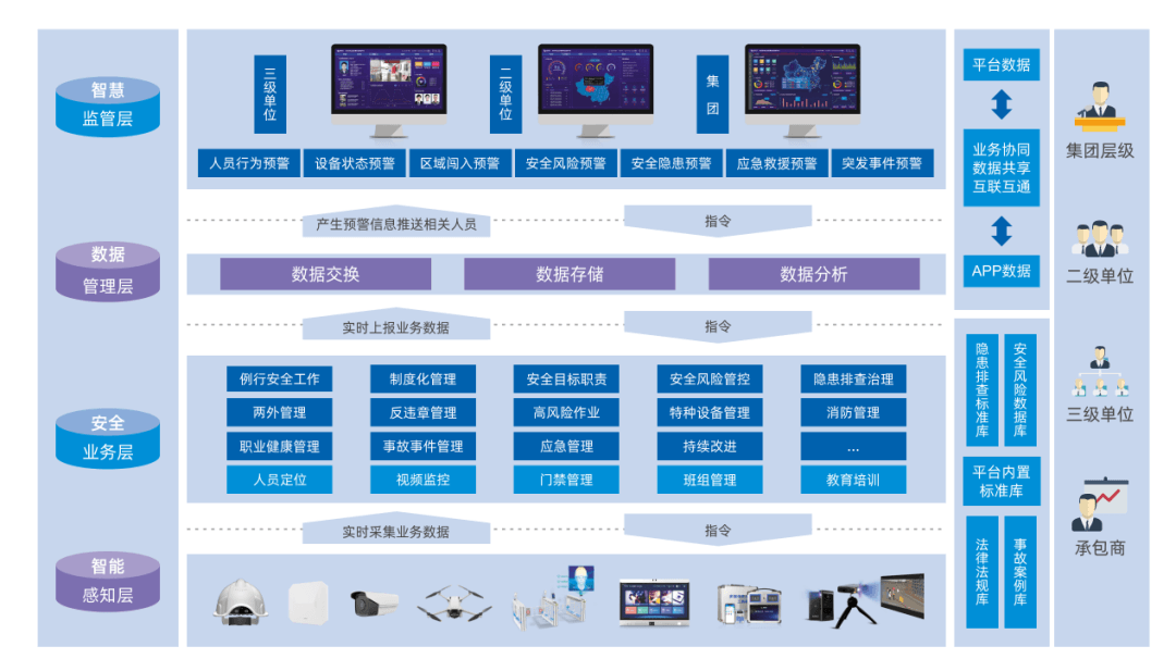 通過構(gòu)建集團(tuán)、二級單位和三級單位統(tǒng)一應(yīng)用平臺,實(shí)現(xiàn)“安全管理數(shù)據(jù)”上下貫通、左右協(xié)同。