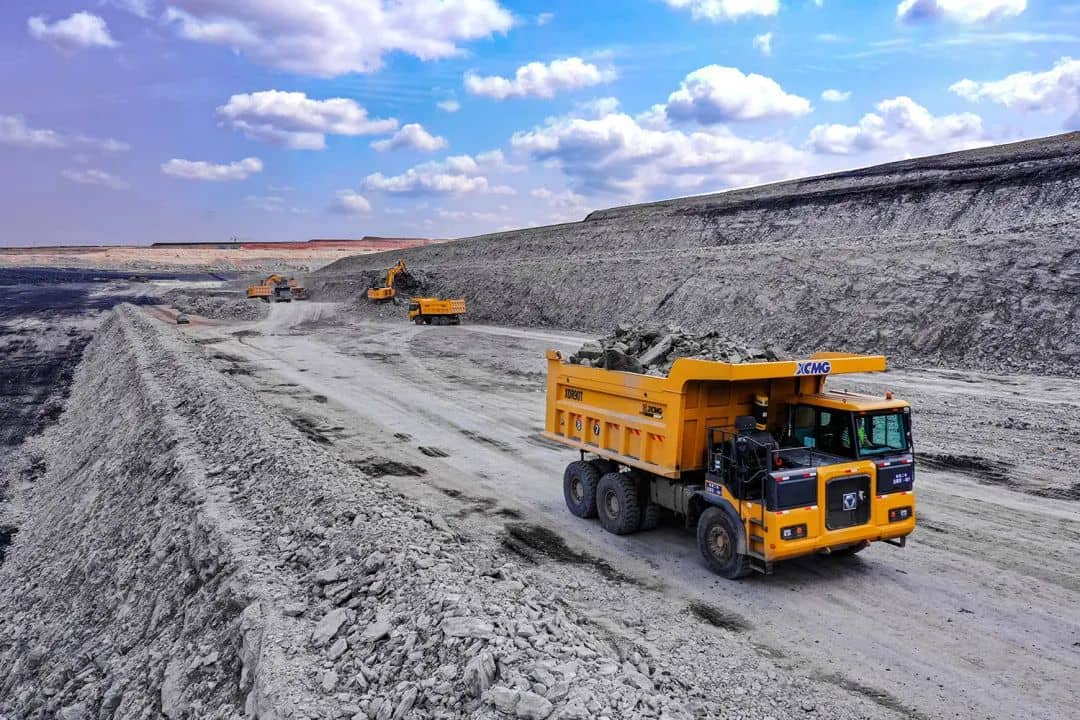 數(shù)十輛徐工礦車(chē)穿梭往來(lái)