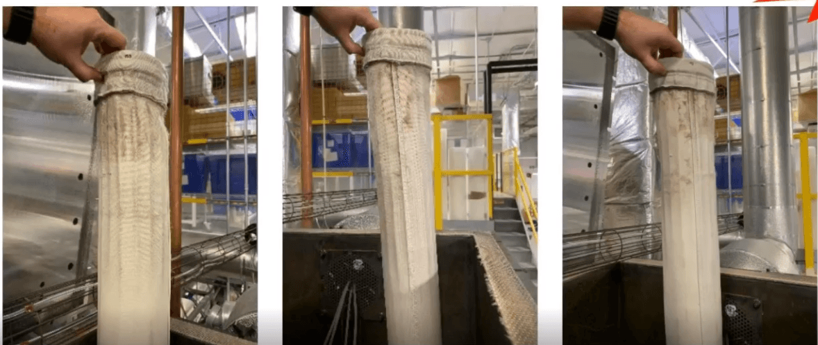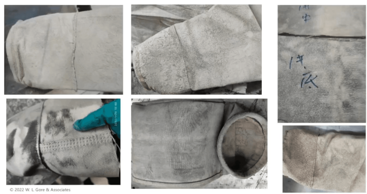 戈爾玻纖覆膜濾袋即使在260度高溫下工作24小時,未出現(xiàn)纖維老化導致濾袋破損,粉塵不達標的情況,且外觀無任何變化。