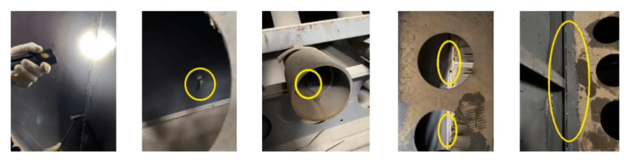5 及時維護除塵器蓋板等各處漏風、漏水問題。漏風可能導致冷空氣進入后,局部結(jié)露腐蝕,除塵器入口負壓不足,系統(tǒng)壓差增大等。