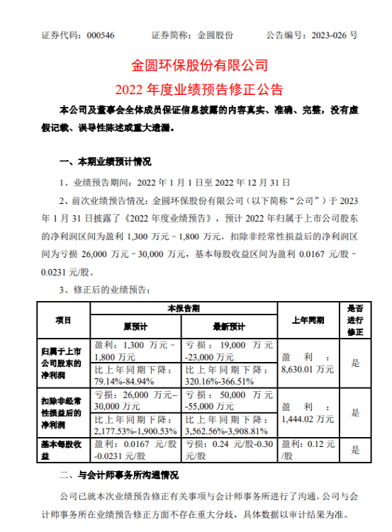 2023年4月16日晚間,金圓股份業(yè)績爆雷,預(yù)計2022年業(yè)績由盈利轉(zhuǎn)為虧損,預(yù)計虧損1.9億元至2.3億元,同比下降320.16%至366.51%??鄯呛筇潛p5億至5.5億元,同比下降3562.56%至3908.81%。