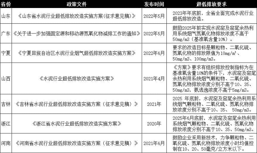 為了響應(yīng)國家政策,國內(nèi)不少省份如廣東、山東、浙江、寧夏、山西等已經(jīng)根據(jù)自身實際制定并收緊了水泥行業(yè)超低排放標(biāo)準(zhǔn)。具體情況如下: