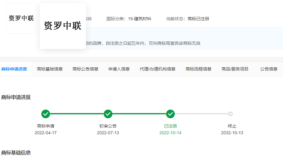 標稱品牌“資羅中聯(lián)”已注冊,商標申請人為洛寧縣新陽商貿(mào)有限公司,而非標稱的“洛陽新陽商貿(mào)有限公司”。