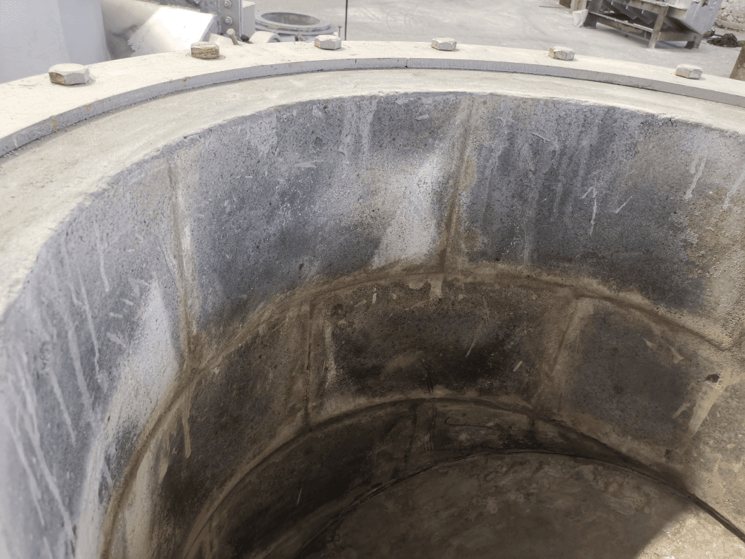 三個月后,該水泥廠聯(lián)合拓邦科技及第三方共同對C5微晶溜管進行檢查、驗收。從驗收情況來看,溜管內(nèi)部整體較好,無明顯結(jié)皮,耐磨、耐腐蝕效果明顯,施工后其保溫效果明顯降低熱量損耗,節(jié)約大量成本,預計使用壽命可達 10 年左右。