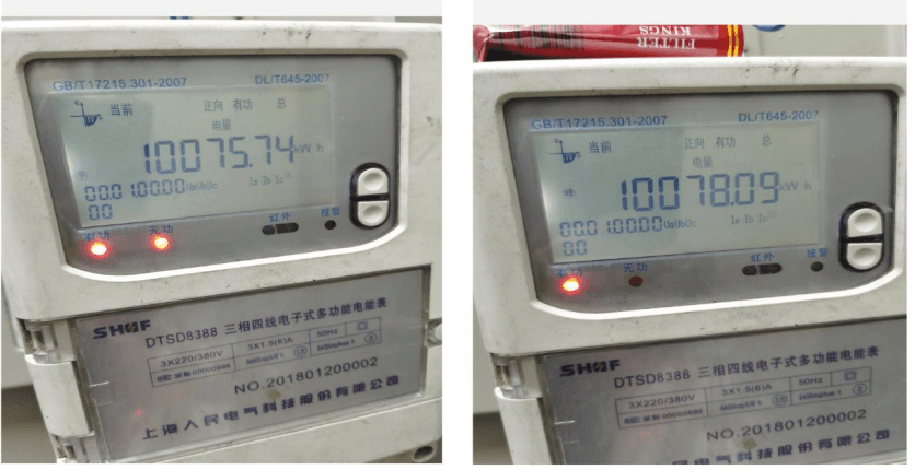 使用節(jié)電設(shè)備前后各采集時間1小時,讀取電表數(shù)據(jù),以耗電量=電表讀數(shù)×互感器比例(100÷5)計算,結(jié)果顯示原耗電量53.8度,節(jié)電后耗電量47度,節(jié)電率為12.64%,年可節(jié)約電費49.40 萬元,同時因功率因數(shù)提升,設(shè)備的利用率(效力)將提高,減少了設(shè)備的受損率,降低了維修成本與費用,經(jīng)濟效益良好。同時年節(jié)約標(biāo)煤量約19.92 萬,年減排二氧化碳量約53.78噸,助力企業(yè)節(jié)能減排。