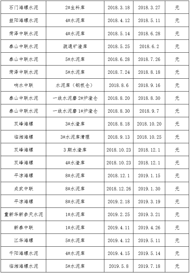 在清庫(kù)作業(yè)全部結(jié)束并驗(yàn)收合格后,施工方應(yīng)依照水泥企業(yè)相關(guān)要求,恢復(fù)所有技改項(xiàng)目,尤其要密封各部位孔門,避免出現(xiàn)漏水情況,造成后期儲(chǔ)存庫(kù)使用周期縮減。在施工過(guò)程中一定要避免開孔等一切破壞儲(chǔ)存庫(kù)原始結(jié)構(gòu)的作業(yè),尤其是磚混結(jié)構(gòu)的庫(kù)型,鋼板倉(cāng)要格外注意焊縫、材料應(yīng)力等問(wèn)題。