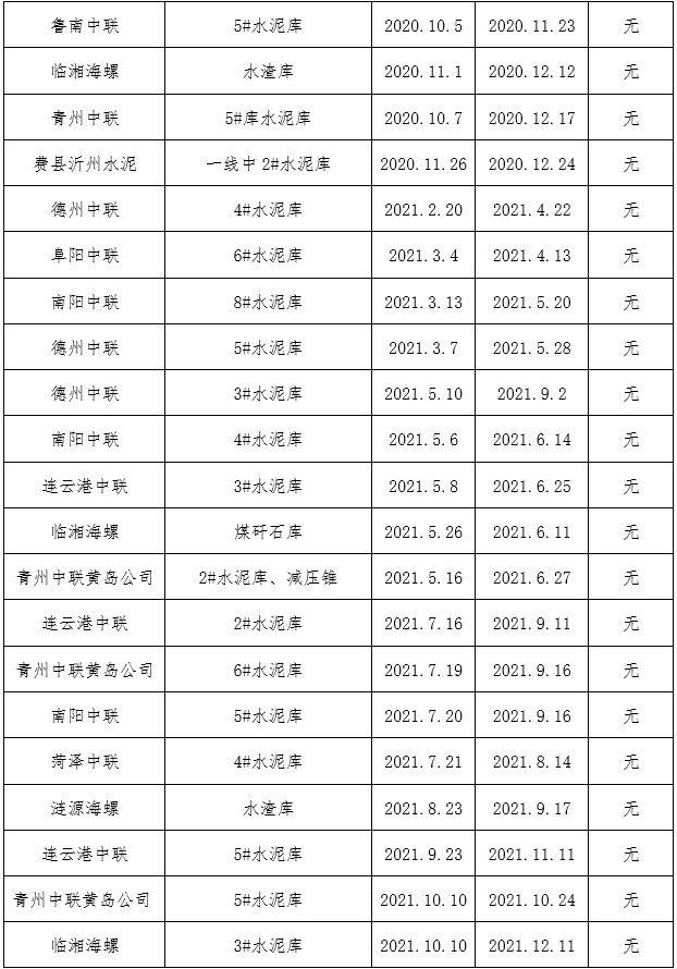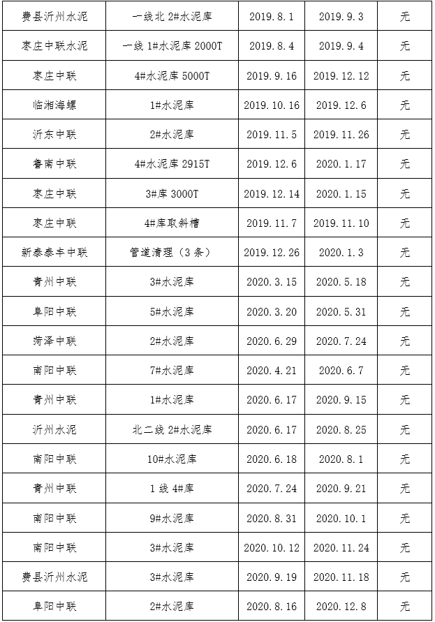 鑫盛利水泥倉(cāng)智能機(jī)械清理有限公司業(yè)績(jī)表