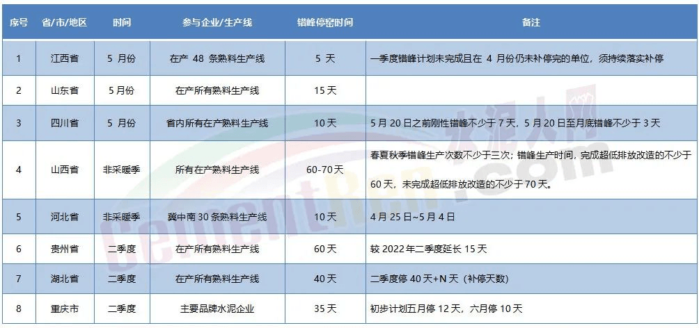 據(jù)水泥人網(wǎng)不完全統(tǒng)計(jì),除已開啟二季度錯(cuò)峰生產(chǎn)的10多個(gè)省市地區(qū)外,其他省份的水泥窯線也陸續(xù)進(jìn)入“庫滿即停”的模式。預(yù)計(jì)目前已有六七百家水泥窯企處于這個(gè)模式。