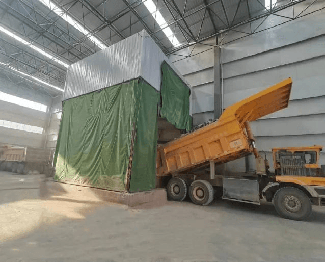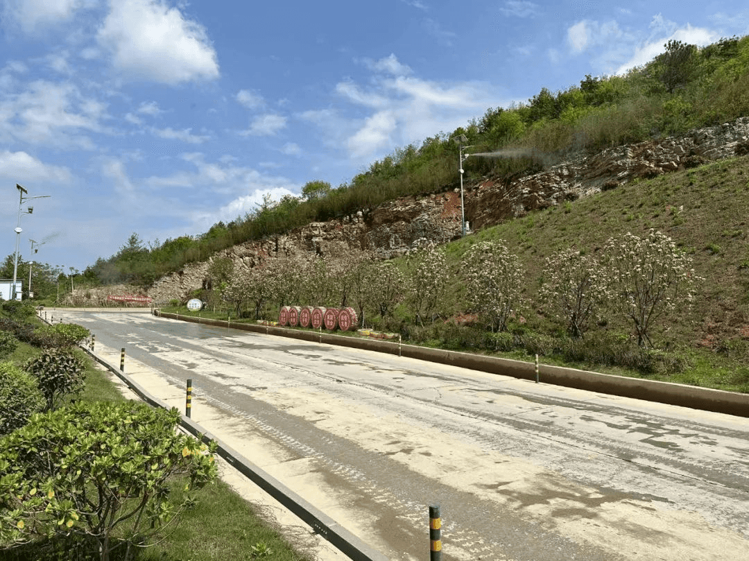 為建設(shè)無塵礦山,避免石料卸車時(shí)形成揚(yáng)塵,兗州中材投資設(shè)計(jì)了361平臺卸料大棚,棚內(nèi)安裝噴霧降塵系統(tǒng),形成作業(yè)時(shí)外面不見灰、里面不見土的清潔作業(yè)環(huán)境,有效保證了礦山作業(yè)時(shí)司機(jī)的健康安全。