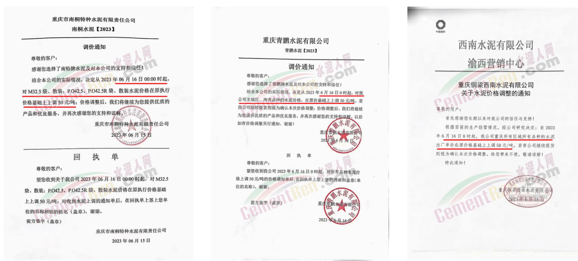 重慶區(qū)域南桐特種水泥、青鵬水泥、銅梁西南水泥、利萬(wàn)步森水泥、億鑫聯(lián)水泥、宏云建材等主要品牌企業(yè)復(fù)價(jià)上調(diào)30~50元/噸。