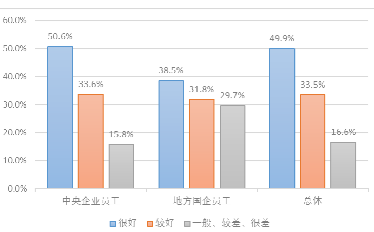 3.部分國(guó)企黨組織的海外品牌傳播能力有待進(jìn)一步提升。在國(guó)企深度參與國(guó)際市場(chǎng)的背景下,部分國(guó)企國(guó)際化傳播經(jīng)驗(yàn)不足、海外宣傳能力不足的問(wèn)題愈發(fā)突出,部分國(guó)企黨組織出現(xiàn)一定程度的功能缺位。國(guó)企“走出去”與品牌傳播建設(shè)并不同步,品牌傳播中的弱點(diǎn)已經(jīng)成為國(guó)企“走出去”過(guò)程中的巨大隱患。相關(guān)研究指出,中國(guó)國(guó)企“傳播與公關(guān)能力不足,媒體溝通、政府公關(guān)有待加強(qiáng)”“國(guó)際化營(yíng)銷經(jīng)驗(yàn)還比較欠缺”。課題調(diào)研結(jié)果顯示,受訪的中央企業(yè)職工中,只有50.6%的員工認(rèn)為企業(yè)黨組織在領(lǐng)導(dǎo)打造世界一流品牌過(guò)程中作用發(fā)揮得很好,還有15.8%的員工認(rèn)為做得一般、較差或很差,而地方國(guó)企這兩項(xiàng)比例分別為38.5%和29.7%(見(jiàn)圖5)??梢?jiàn),國(guó)企職工對(duì)黨組織領(lǐng)導(dǎo)打造世界一流品牌的表現(xiàn)總體上認(rèn)可度不及預(yù)期。