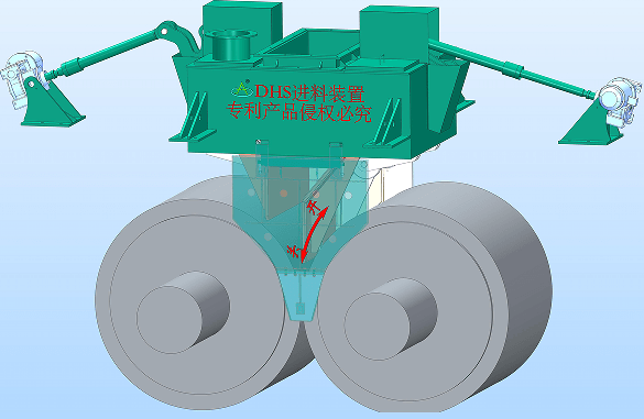 輥壓機負(fù)荷運行中,兩輥間物料的連續(xù)性和密閉性對輥壓機的穩(wěn)定運行至關(guān)重要,直接影響輥壓機效率的發(fā)揮。長期以來,輥壓機在生產(chǎn)環(huán)節(jié)中,往往忽視了料床對輥壓機的影響,輥間物料溢散,循環(huán)負(fù)荷大,設(shè)備磨損加劇,而輥壓機效率不高,導(dǎo)致能耗居高不下,嚴(yán)重影響經(jīng)濟指標(biāo)。新型的進料裝置---DHS弧形進料裝置完美的解決了這個問題。