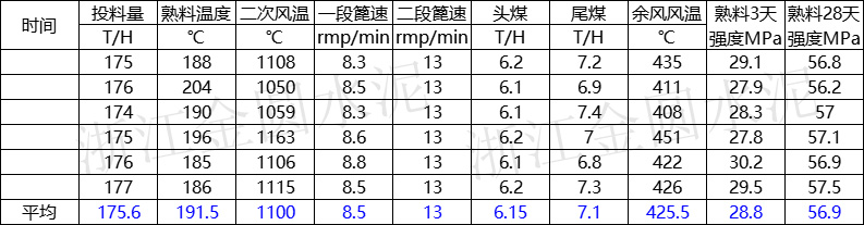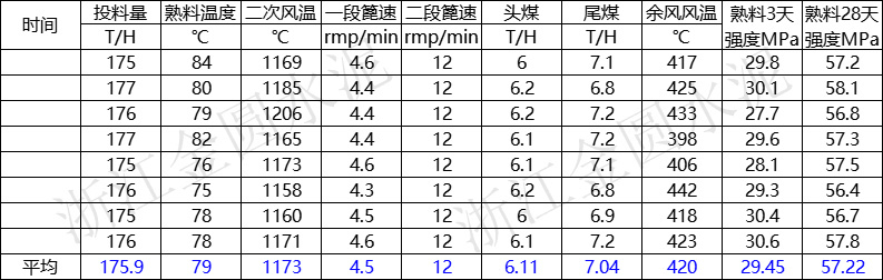 二次風溫平均值1173℃,出篦冷機熟料溫度測量平均值79℃,兩項指標的完成均優(yōu)于合同指標。