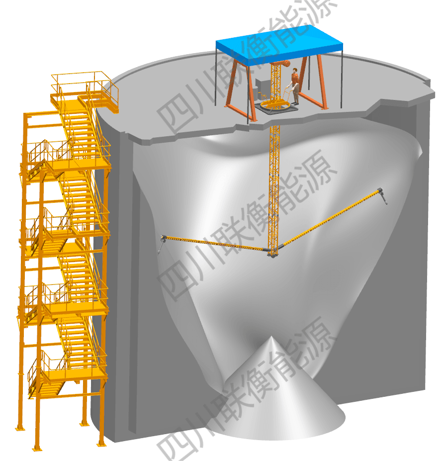 針對這一世界性行業(yè)難題,四川聯(lián)衡能源發(fā)展有限公司(以下簡稱“聯(lián)衡能源”)通過5年的自主研發(fā)和不斷升級,實現(xiàn)了無人進庫清壁通堵,徹底杜絕了庫內高處作業(yè)和坍塌掩埋的作業(yè)風險,并在清庫作業(yè)中全程開放庫頂庫內視頻監(jiān)控,供甲方實時監(jiān)督。