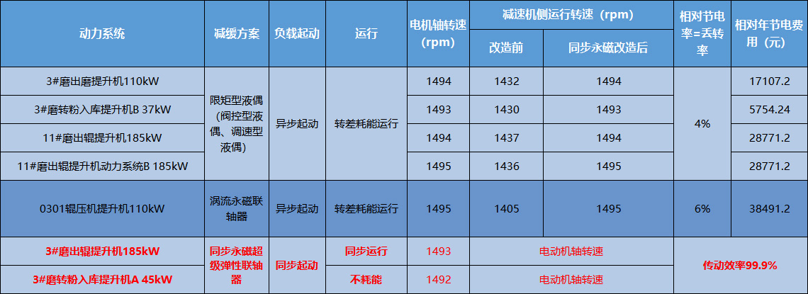 河南錦榮水泥各動(dòng)力系統(tǒng)采用同步永磁超級(jí)彈性聯(lián)軸器改造后節(jié)電效果亦十分顯著: