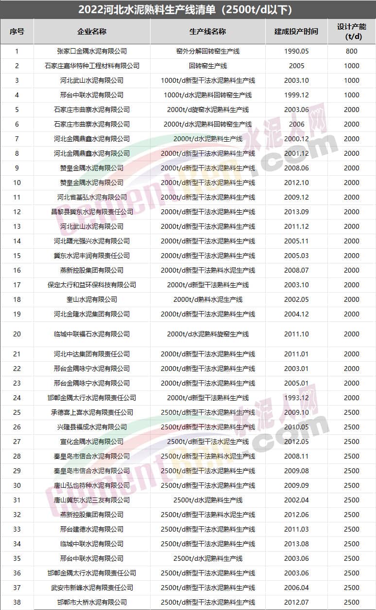 山東?。?/strong>2022年年底前,除特種水泥熟料和化工配套水泥熟料生產(chǎn)線外,2500噸/日以下的水泥熟料生產(chǎn)線已全部淘汰,2023年6月底前全部拆除的生產(chǎn)裝置。2500噸/日的水泥熟料生產(chǎn)線整合退出一半,其余2500噸/日水泥熟料生產(chǎn)線須確定產(chǎn)能置換方案。逾期未完成產(chǎn)能置換的水泥熟料生產(chǎn)線直接關(guān)停退出。
