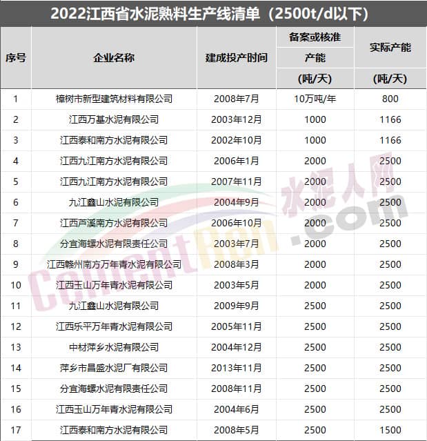 江西?。?/strong>《江西省“十四五”應(yīng)對氣候變化規(guī)劃》提出,加快淘汰2000噸/日及以下普通水泥熟料生產(chǎn)線,產(chǎn)能利用率較低的地區(qū)加快淘汰2500噸/日及以下普通水泥熟料生產(chǎn)線。