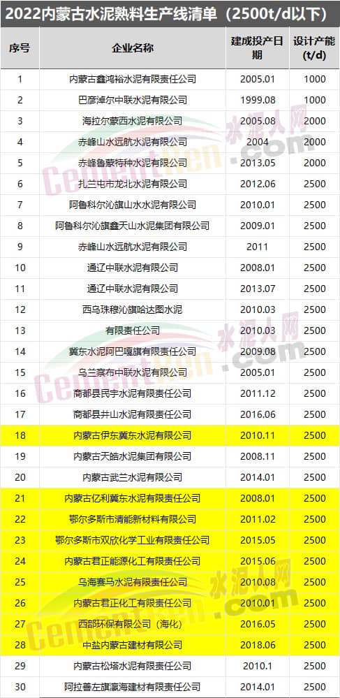 寧夏回族自治區(qū):《寧夏回族自治區(qū)能耗雙控產(chǎn)業(yè)結(jié)構(gòu)調(diào)整指導(dǎo)目錄(試行)》要求,2023年淘汰2500噸/日以下水泥熟料生產(chǎn)線、JT窯、直徑3.2米以下水泥磨機(jī)(含礦粉磨機(jī)),化工配套水泥熟料生產(chǎn)線于2024年前淘汰;2025年前淘汰2500噸/日的水泥熟料生產(chǎn)線(化工配套水泥熟料生產(chǎn)線除外)。