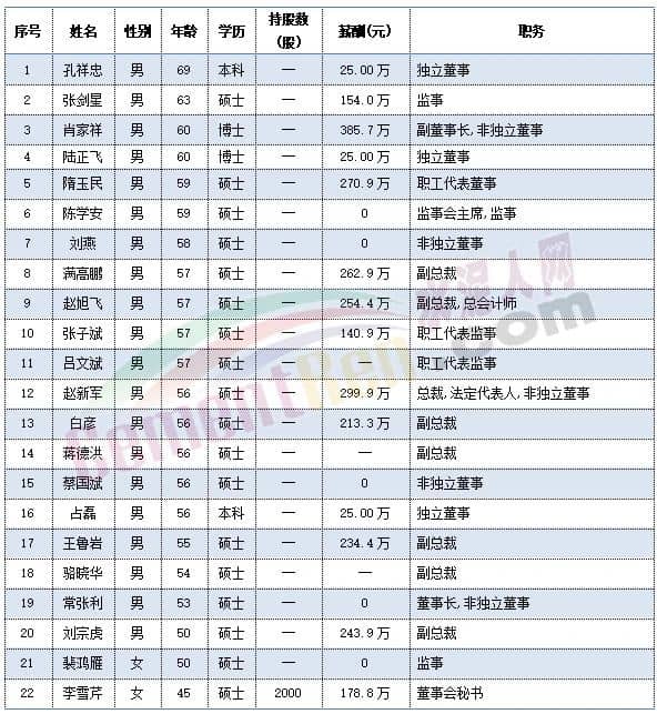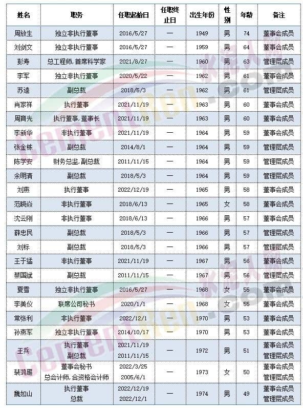 中國建材董事會成員及管理層成員中包括執(zhí)行總裁肖家祥,非執(zhí)行董事李新華在內(nèi)的多位高管年齡處于59-60歲之間。