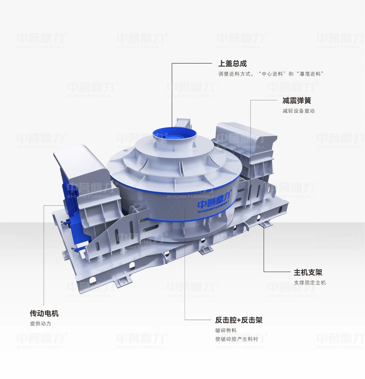 中譽鼎力新型沖擊破碎機通過中心進料+瀑落進料的方式,以多重的設計優(yōu)勢和優(yōu)質的制造選材,確保設備的平穩(wěn)運行和更長壽命;同時提高設備可靠性,減少停機時間,降低維修成本。