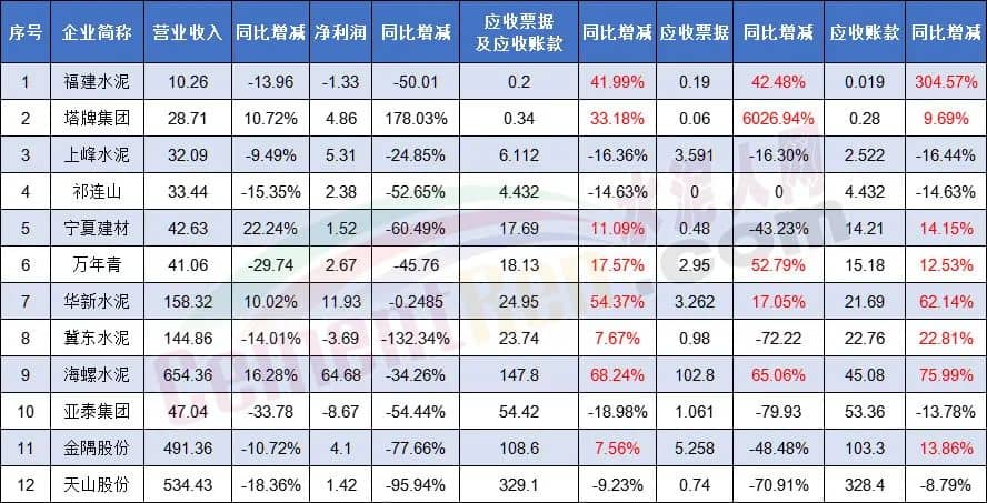多家水泥企業(yè)應(yīng)收賬款同比增加
