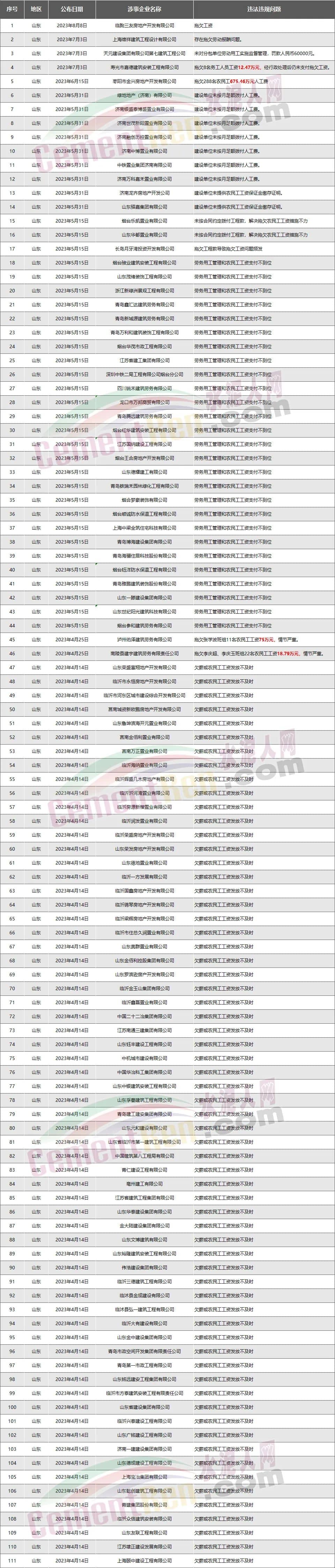 山東111家房企、建企欠薪被通報(bào)或處罰,涉及金額781.72萬(wàn)元