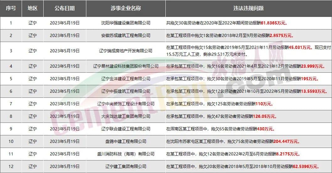 16家水泥企業(yè)欠薪超8348萬(wàn)元