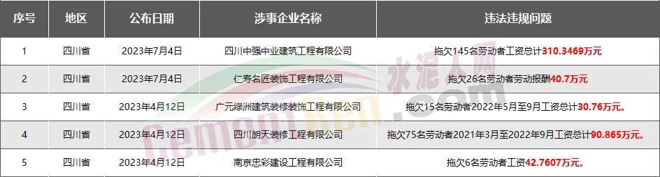 四川省5家房企、建企欠薪被通報(bào)或處罰,涉及金額515.42萬(wàn)元