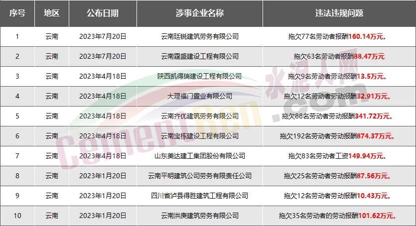 云南省10家房企、建企欠薪被通報(bào)或處罰,涉及金額1860.66萬(wàn)元