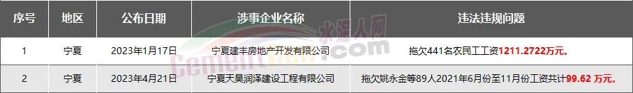 寧夏2家房企、建企欠薪被通報(bào)或處罰,涉及金額1310.89萬(wàn)元