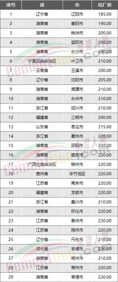 水泥價格“最慘”TOP 10