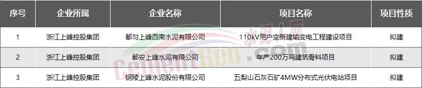 浙江上峰控股集團(tuán):新建擬建項目共3個