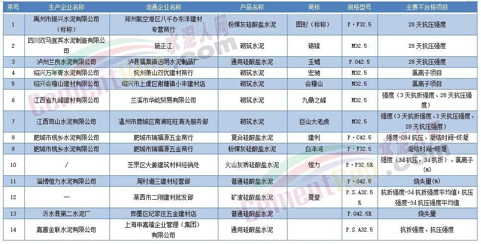 流通領(lǐng)域14批次水泥質(zhì)量不合格
