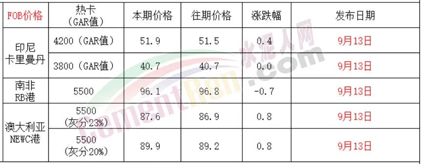 從近期現(xiàn)貨市場來看,產(chǎn)地方面,冶金、化工、建材等非電需求也成為產(chǎn)地市場的主要支撐力。9月13日,產(chǎn)地個別優(yōu)質(zhì)煤種市場價格突破900元/噸,而進口煤價單噸FOB報價依然在600多元。