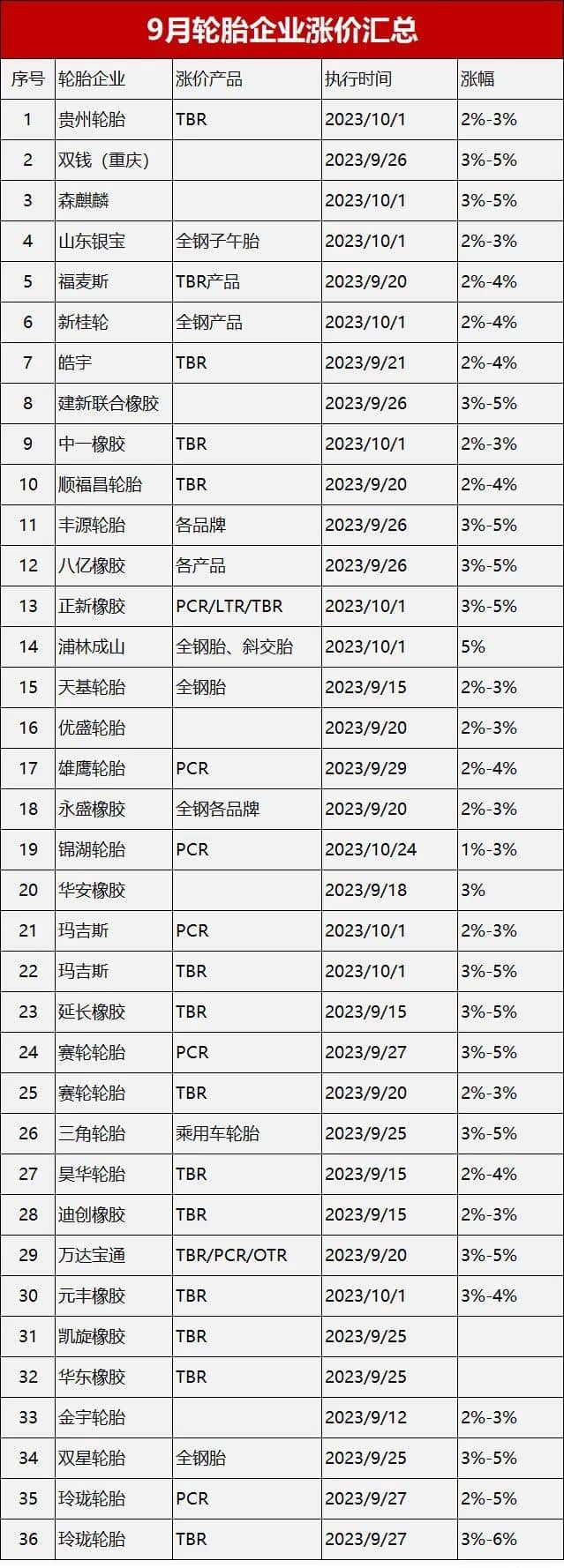 近期,40多家輪胎企業(yè)發(fā)布漲價(jià)通知,其中有針對(duì)全鋼胎的,也有針對(duì)半鋼胎的。正新、瑪吉斯、賽輪、玲瓏等企業(yè)更是先后發(fā)布多張漲價(jià)通知,對(duì)多品牌、多品類產(chǎn)品漲價(jià),漲幅在3%-5%左右。