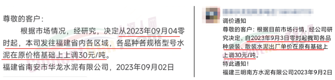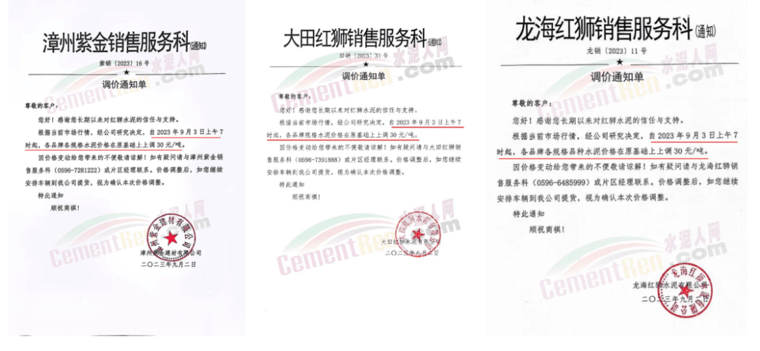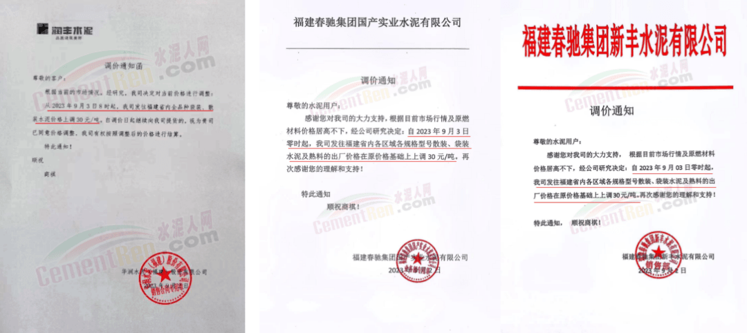 9月3日,占福建省熟料產(chǎn)能近60%,前五強(qiáng)的華潤(rùn)水泥、福建水泥、紅獅水泥、金牛水泥、龍麟集團(tuán)等10多家企業(yè)陸續(xù)通知全省熟料及各品種水泥價(jià)格上調(diào)30元/噸。