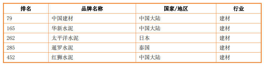 2023年亞洲500強(qiáng)榜單水泥建材行業(yè)